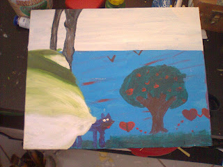 | Quadro que rejeitado pela aluna - serviu para eu pintar Naninho. Devemos dá valor ao que fazemos querida aluna, senão ninguém mais no dará. |
